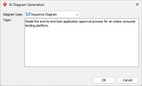 3. In the AI Diagram Generation window, choose Sequence Diagram in the Diagram Type dropdown.